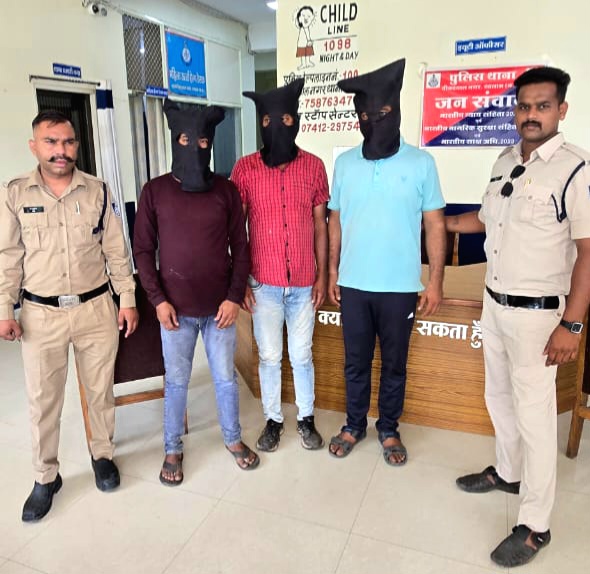 थाना औद्योगिक क्षैत्र रतलाम की टीम द्वारा मुखबीर की सूचना पर पलसोड़ा पर नाकाबन्दी के दौरान बिना नम्बर की टीवीएस राईडर मोटर साईकिल जिस पर सवार 3 व्यक्तियो को पकड़ा गया। नाम पता पूछने पर मोटर सायकिल चलाने वाले का नाम पृथ्वीराज सिह पिता सोहनसिह जाति राजपुत उम्र 21 साल निवासी ग्राम कांडरवासा थाना नामली, बीच में बैठे व्यक्ति ने अपना नाम हरिओम वर्मा पिता कन्हैयालाल वर्मा उम्र 30 साल निवासी हरिजन मोहल्ला ग्राम पंचेड का होना तथा सबसे पीछे व्यक्ति ने अपना नाम हेमंत पिता मोहनलाल परमार उम्र 25 साल निवासी रविदास चौक के पास सेजावता का होना बताया।