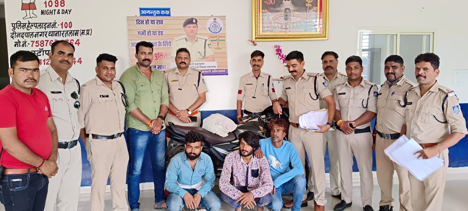 निरीक्षक किशोर पाटनवाला थाना प्रभारी थाना स्टेशन रोड रतलाम, उप.निरी. सचिन डावर, सहायक उप.निरी. आई.एम.खान, प्रधान आऱक्षक जितेन्द्रसिंह बघेल, प्रधान आऱक्षक राजु अमलियार, आरक्षक राजेन्द्रसिंह चौहान, आऱक्षक हर्षल शर्मा, आरक्षक निलेश पाठक, आरक्षक रवि शर्मा, आरक्षक पवन मेहता, आऱक्षक धर्मेन्द्र मईडा, आऱक्षक विजयसिंह शेखावत, आऱक्षक मुकेश कुमावत, आरक्षक टीकमसिंह चुण्डावत, आऱक्षक याकुब अली