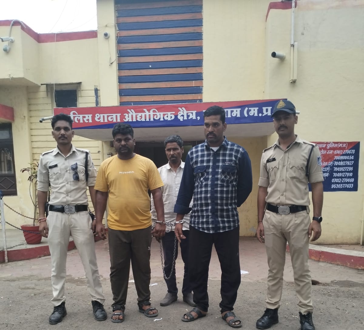 फरियादी की रिपोर्ट पर से अज्ञात आरोपीयो के विरूद्ध अपराध क्रमांक 230/2023 धारा 457,380 भादवि का पंजीबद्ध कर विवेचना मे लिया गया एंव अज्ञात आरोपी एंव चोरी गये माल की लगातार तलाश की गई, मुखबीर सूचना पर प्राप्त होने संदेही राकेश पिता दशरथ भाटी जाती मोगीया उम्र 35 साल नि.चोराना थाना बिलपांक हामु. अरिहंत परिसर रतलाम व दिनेश पिता गणेश पंवार जाती मोगीया उम्र 30 साल नि.चोराना थाना बिलपांक व गोविंद पिता नरसिंह चौहान जाती मोगीया उम्र 52 साल नि.नायन थाना नामली को हिरासत मे लेकर हिकमातमली से पुछताछ करते जुर्म स्वीकार किया।