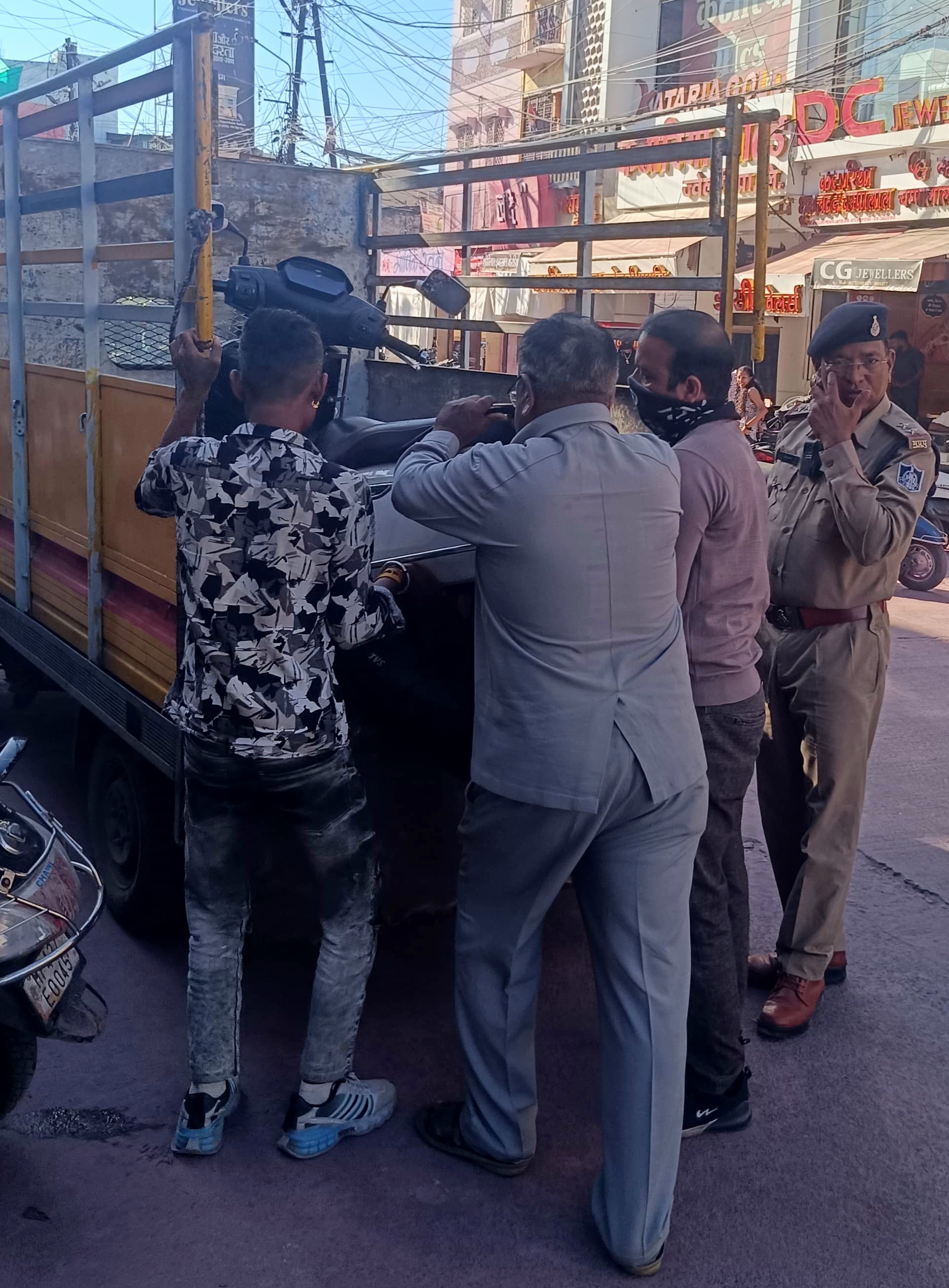 बिना क्रेन के पसीने में तर-बतर पुलिस : मशक्कत कर लोडिंग वाहनों में ले जाने पड़े जब्त वाहन