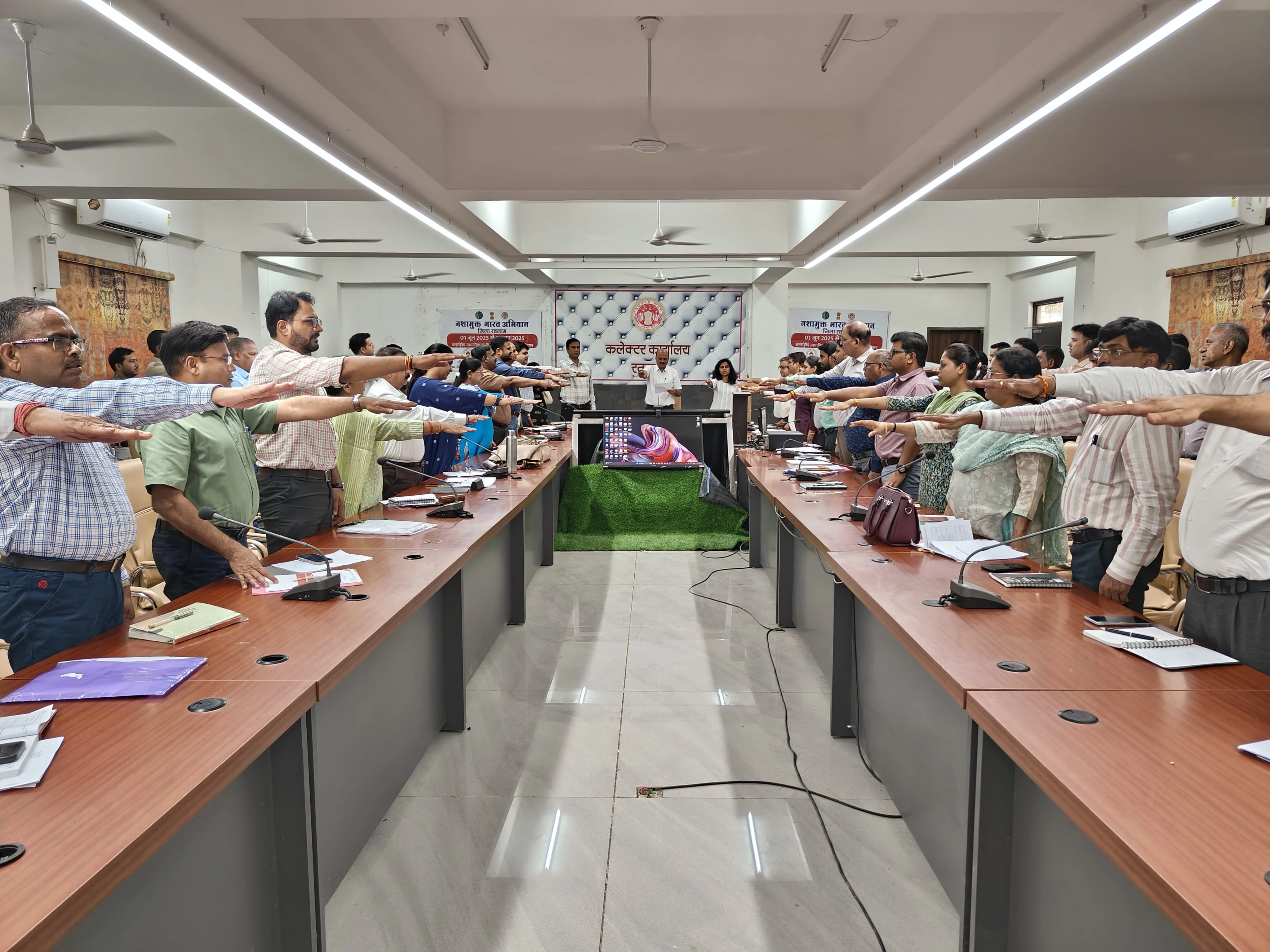रतलाम 16 जून 2025/ कलेक्टर श्री राजेश बाथम द्वारा कलेक्ट्रेट सभागृह में आयोजित जिला स्तरीय नशामुक्ति समिति की बैठक में जिला स्तरीय अधिकारियों को नशा मुक्ति की शपथ दिलाई कि हम आज नशामुक्त भारत अभियान के अंतर्गत एक जुट होकर प्रतिज्ञा करते हैं कि न केवल समुदाय, परिवार, मित्र, बल्कि स्वयं को भी नशामुक्त कराएँगे क्योंकि बदलाव की शुरुआत अपने आप से होनी चाहिए।