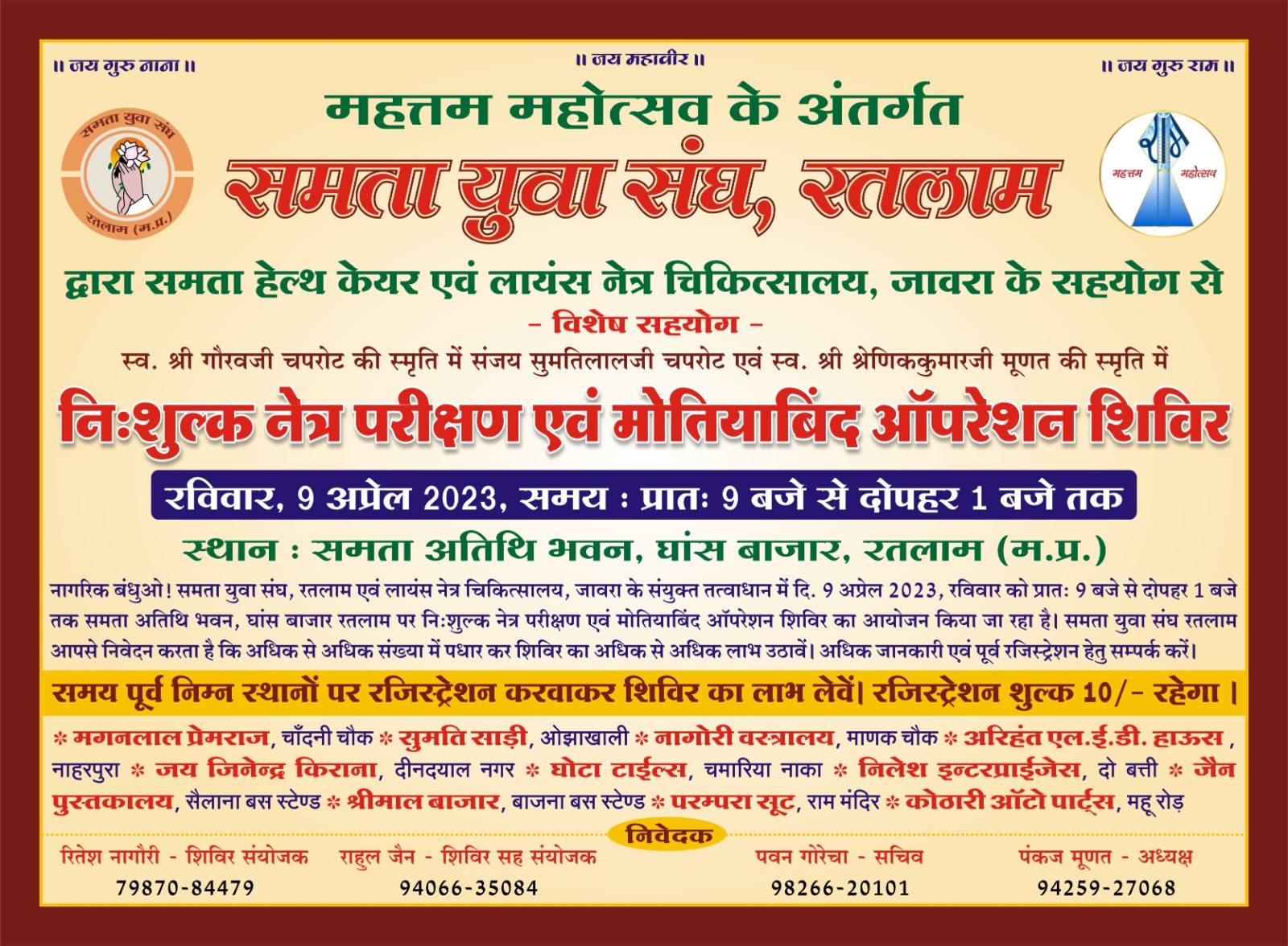 : समता युवा संघ द्वार एक दिवसीय निशुल्क नेत्र परीक्षण शिविर