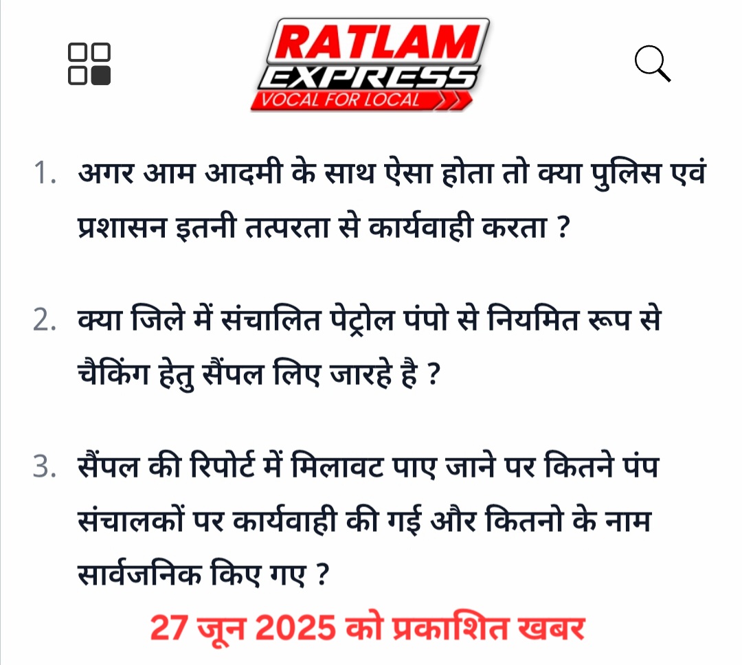 रतलाम एक्सप्रेस ने खबर में उठाया था नियमित जांच का मुद्दा : पेट्रोल पंपो पर गुणवत्ता जांचने हेतु शुरू हुआ निरीक्षण