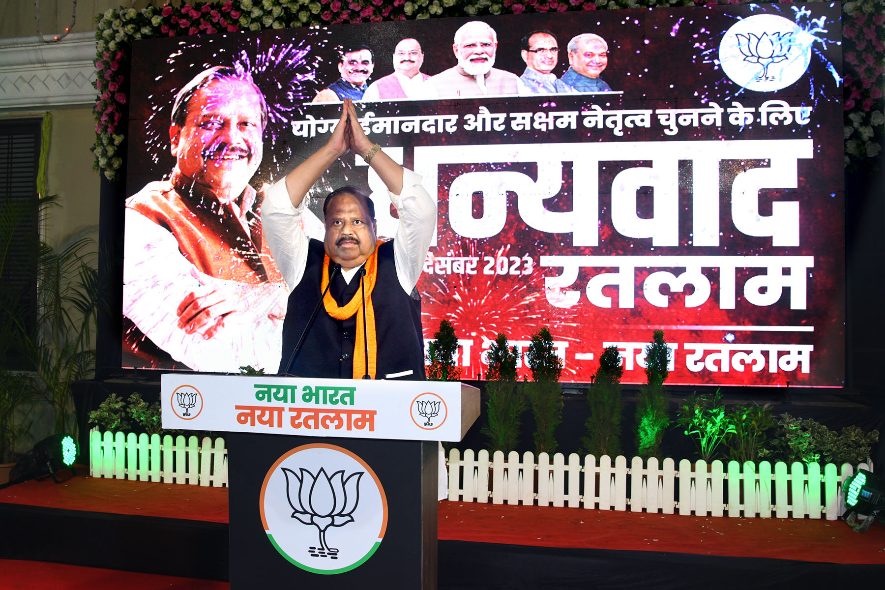 श्री काश्यप ने कहा कि कार्यकर्ताओं ने पहली बैठक में ही 56 हजार की जीत का संकल्प लिया था और उससे अधिक मतों से जीत दिलाई है। हमने नारा दिया था कि नया भारत, नया रतलाम, अब इसी नारे को यथार्थ में उतारेंगे। रतलाम को मालवा ही नहीं अपितु देश का सबसे बेहतर व्यापारिक केंद्र बनाएंगे। मतदाताओं ने प्रधानमंत्री श्री नरेंद्र मोदी की गारंटी पर भरोसा किया है। अब आने वाले वर्ष में रतलाम से मोदी जी के हाथ भी लोकसभा चुनाव इसी तरह जीताकर मजबूत करना है।