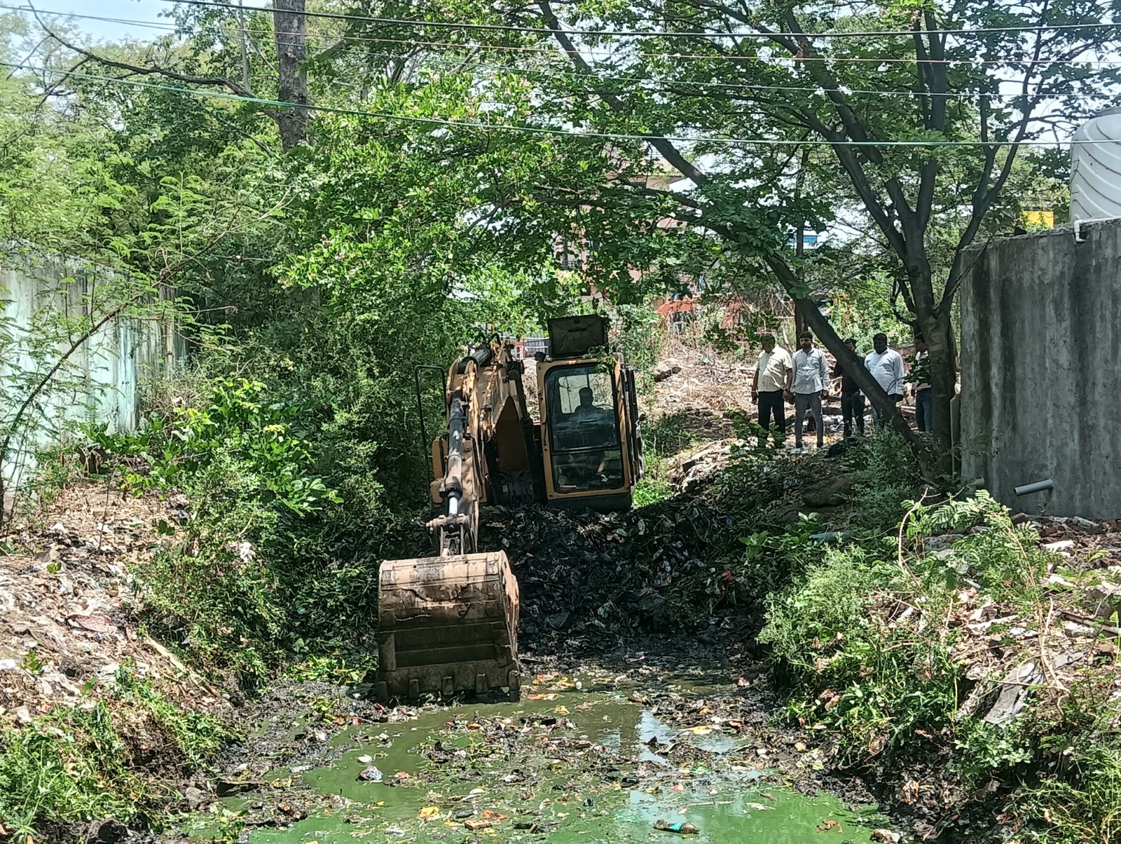 रतलाम 15 मई । महापौर प्रहलाद पटेल, स्वच्छता एवं ठोस अपशिष्ट प्रबंधन समिति प्रभारी विशाल शर्मा व निगम आयुक्त हिमांशु भट्ट द्वारा दिये गये निर्देशों के तहत नगर निगम के स्वास्थ्य विभाग अमले द्वारा शहर के बड़े नाले की सफाई का कार्य युद्ध स्तर पर किया जा रहा है जिसके तहत नगर के विभिन्न बड़े नालो की सफाई का कार्य करवाया गया।