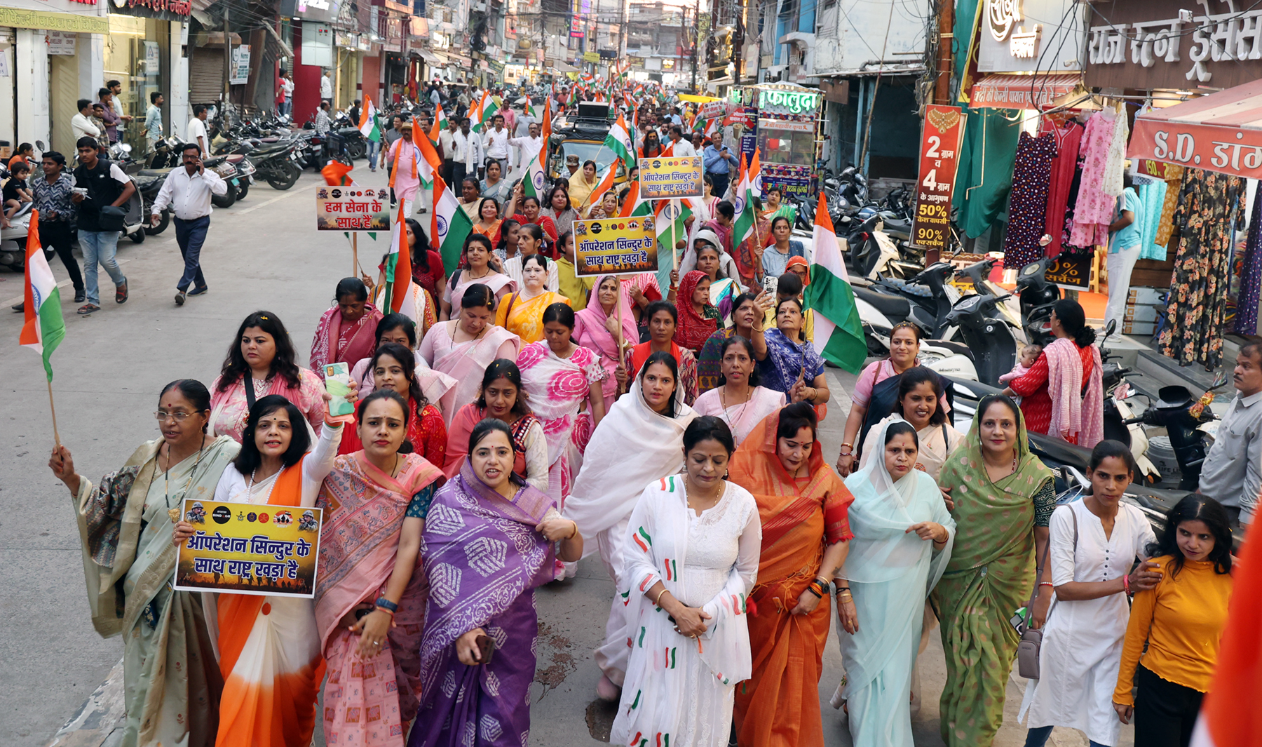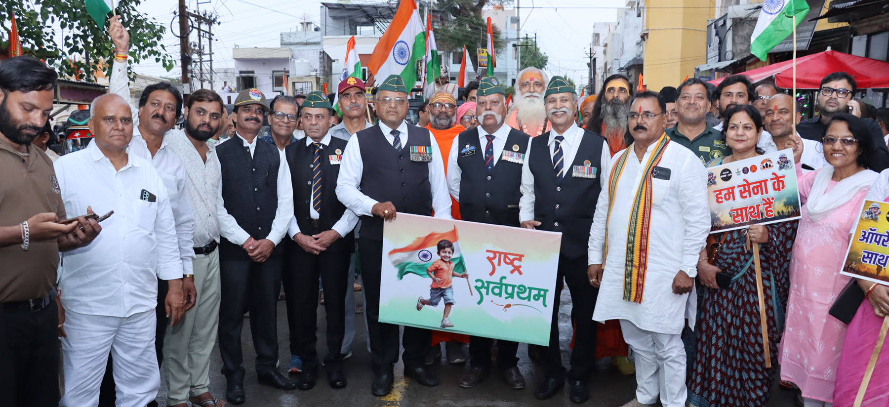 रैली में हिन्दू, मुस्लिम, सिख, ईसाई, सभी धर्माे के धर्म गुरू हाथ में तिरंगा थामकर शामिल हुए। शहरवासी पाकिस्तान मुर्दाबाद, हिन्दुस्तान जिंदाबाद और हम सेना के साथ है, ऑपरेशन सिन्दूर के साथ देश खडा है, जैसे स्लोगन की तख्तिया थामे चल रहे थे। मार्ग में जगह-जगह रैली का स्वागत भी किया गया।