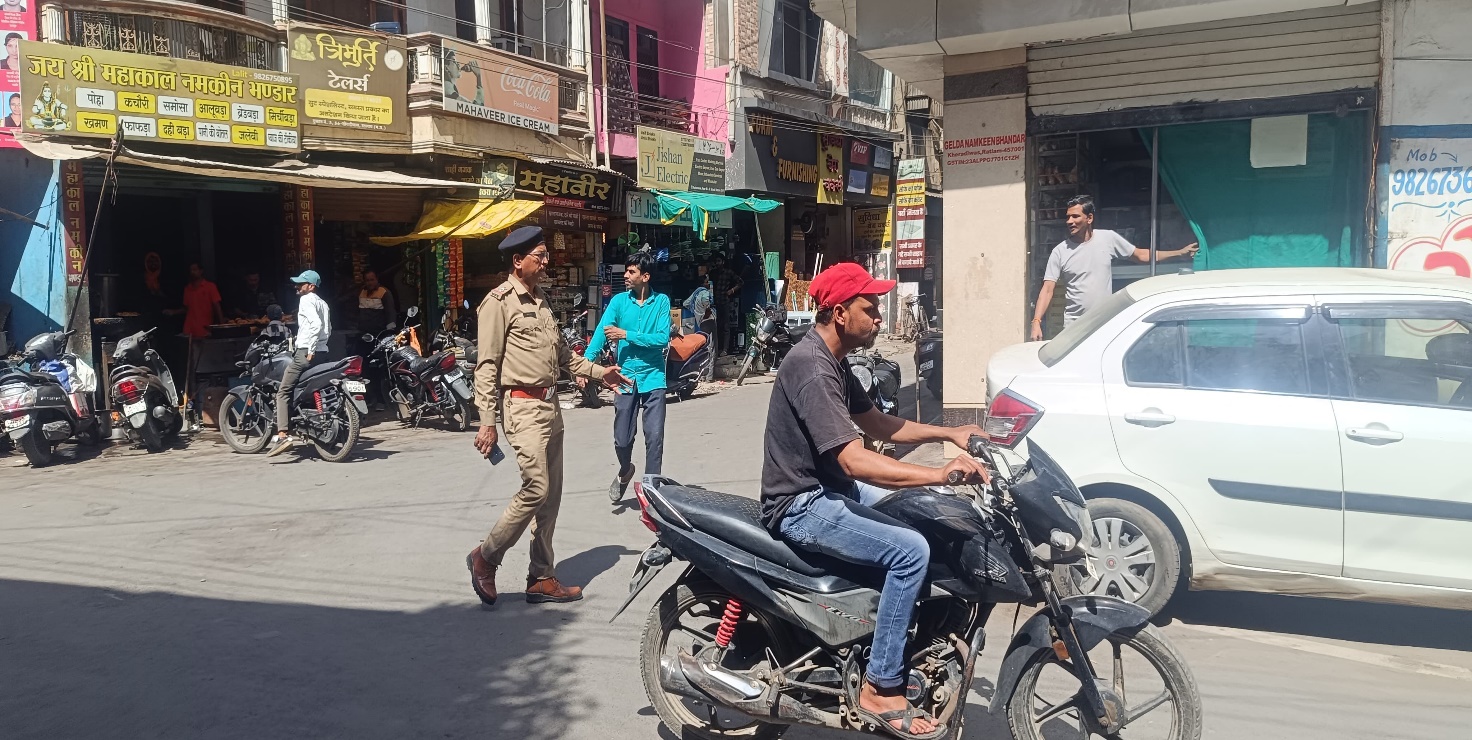 यातायात पुलिस और नगर निगम रतलाम की टीम द्वारा संयुक्त रुप से शहर रतलाम में यातायात को सुगम व सूचारु बनाने के लिए एक सप्ताह एक रोड अभियान के तहत दिनांक 23.04.25 को घास बाजार से डालुमोदी बाजार तक के मार्ग पर अव्यवस्थित रुप से लगे वाहनों, सब्जी फ्रुट के हाथ ठैलागाडी, फुटपाथ पर सब्जी बेचने वालो व दुकानो के बाहर फुटपाथ पर रखे सामान को समझाईस देकर हटवाया जाकर घास बाजार से डालुमोदी बाजार तक के मार्ग को यातायात के लिए सुगम व सूचारु किया गया।