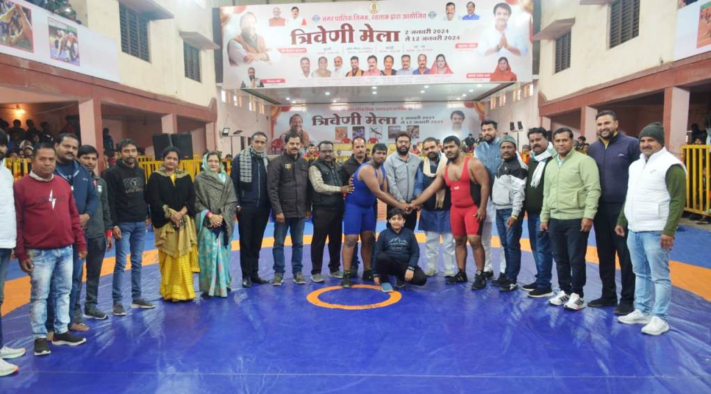 रतलाम 7 जनवरी । महापौर केसरी कुश्ती प्रतियोगिता के दूसरे दिन के मुकाबले नेता पक्ष श्री भगत सिंह भदौरिया, क्षेत्रिय पार्षद एवं महापौर परिषद सदस्य श्री विशाल शर्मा, श्री अक्षय संघवी, महापौर परिषद सदस्य श्री पप्पू पुरोहित, श्रीमती अनिता कटारा, मनोहरलाल राजू सोनी, रामू भाई डाबी, श्रीमती सपना त्रिपाठी पार्षद प्रतिनिधि श्री गौरव त्रिपाठी पूर्व पार्षद श्री राजीव रावत के आतिथ्य में प्रारंभ हुए।