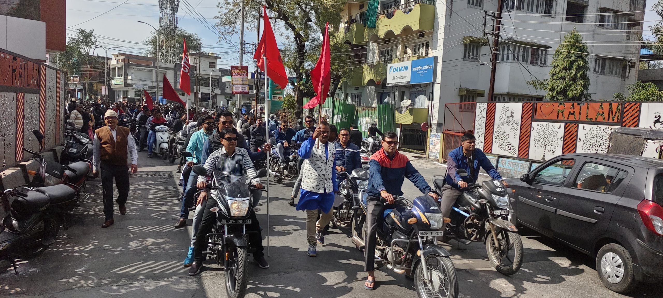 मेडिकल रिप्रेजेंटेटिव यूनियन द्वारा देश भर में हड़ताल कर अपनी 8 सूत्रीय मांगों को लेकर जोरदार प्रदर्शन किया इसी तारतम्य में आज रतलाम में प्रेस क्लब पर विभिन्न ट्रेड यूनियन के नेताओ ने आयोजित सभा अपने विचार व्यक्त किए, पोस्टल एंप्लॉयज यूनियन के कॉम आई एल पुरोहित, एल आई सी के प्रियेश शर्मा, पेंशनर्स संघ के कीर्ति शर्मा, सीटू के एम एल नगावत, आंगनवाड़ी संघ की संरक्षक श्रीमती गीता देवी राठौर, बैंक एंप्लॉयज यूनियन के नरेंद्र जोशी, लेखक संघ के रणजीत सिंह ने अपने विचार व्यक्त किए। कॉम नरेंद्र जोशी ने कहा कि वर्तमान समय में सरकारों द्वारा आमजन को भ्रमित किया जा रहा है, मंहगाई चरम पर है, प्रदेश की वित्तीय स्थिति दयनीय है परंतु चुनाव जीतने के लिए रेवड़ी संस्कृति चरम पर है, जनता का ध्यान भटकाने के लिए मंदिर मस्जिद मुद्दों को उठाया जाता है, ओल्ड पेंशन स्कीम, को लेकर शीघ्र आंदोलन शुरू किया जाएगा। प्रादेशिक उपाध्यक्ष अश्विनी शर्मा ने बताया कि आज की हड़ताल मुख्य रूप से आमजन से जुड़ी मांगे जैसे दवाओं पर 0 %जी एस टी, चिकित्सीय उपकरणों को टैक्स साथ ऑनलाइन दवा व्यापार को बंद किया जाय, दवाओं के अनैतिक व्यापार को लेकर नीति बनाई जा, निरंकुश दवा कंपनियों के दमन को रोका जाय, न्यूनतम वेतन 26000, चार श्रम संहिताओं को वापस लिया जाए व पुराने श्रम संहिताओं को बहाल किया जाय। सभा के पश्चात हड़ताली कर्मचारियों द्वारा जोरदार प्रदर्शन नारेबाजी की गई, शौक नही मजबूरी है, ये हड़ताल जरूरी है।। दवाओं के दाम कम करो।। न्यूनतम वेतन देना होगा।। कटनी छटनी बंद करो।। जैसे नारों से कलेक्टोरेट परिसर गुंजायमान था। अपनी मांगों को लेकर एक ज्ञापन एस डी एम श्री संजीव केशव पांडे को सौंपा, ज्ञापन का वाचन निखिल मिश्र ने किया। इस अवसर पर अभिषेक जैन, रसीद खान, स्नेहिल मोघे, अविनाश पोरवाल, संजय व्यास, गोपाल चौहान, आशिक अंसारी, पवन धाकड़, रविन्द्र शर्मा, उपस्थित थे।। कार्यक्रम का संचालन गजेंद्र सिंह रावत ने आभार यदेंद्र जोशी ने व्यक्त किया।।