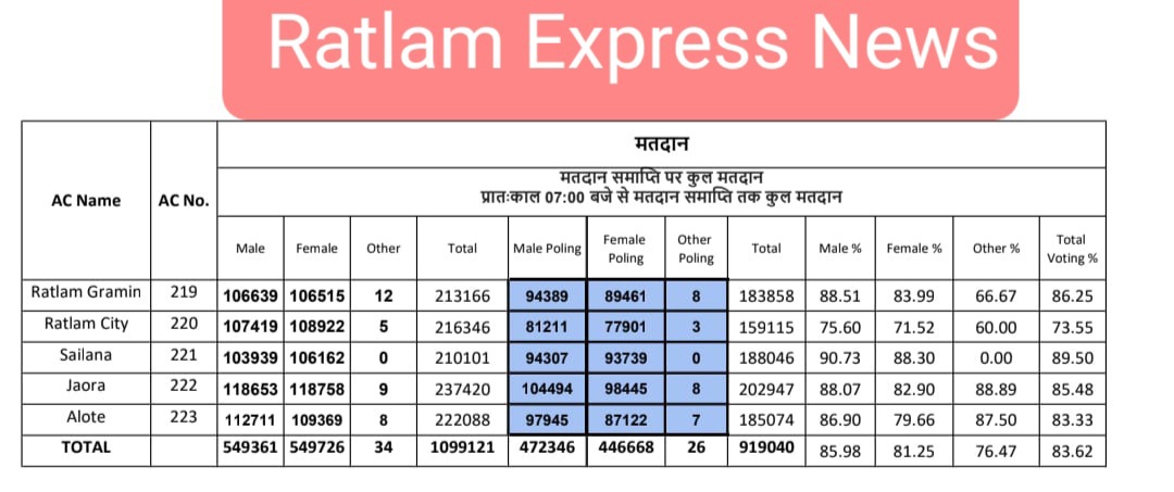 प्रतिशत मतदान हुआ। रतलाम ग्रामीण में
