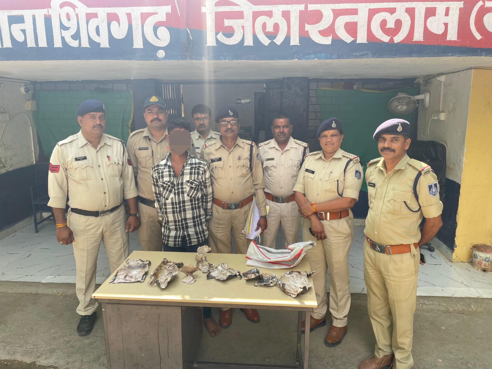 उक्त प्रकरण को गंभीरता को देखते हुए पुलिस अधीक्षक रतलाम श्री राहुल कुमार लोढा के निर्देशन व श्रीमान अति.पुलिस अधीक्षक महोदय रतलाम श्री राकेश खाखा के मार्गदर्शन में एवं श्रीमान एसडीओपी महोदय रतलाम ग्रामीण श्री अभिलाष कुमार भलावी के नेतृत्व में प्रकरण में माल मुल्जिम की पतारसी हेतु विशेष टीम गठित की गई , टीम के द्वारा माल मुल्जिम की लगातार पतारसी के अथक प्रयास कर मुखबिर की सूचना के आधार पर संदेही सुरपाल उर्फ सुरेश पिता राजु मईडा जाति भील उम्र 32 वर्ष निवासी ग्राम कुंवरपाडा थाना शिवगढ जिला रतलाम (म.प्र.) से मनोवैज्ञानिक तरीके से पुछताछ करने पर जुर्म स्वीकार किया । प्रकरण में गिरफ्तारशुदा आरोपी से चोरी गया मश्रुका जप्त किया गया ।