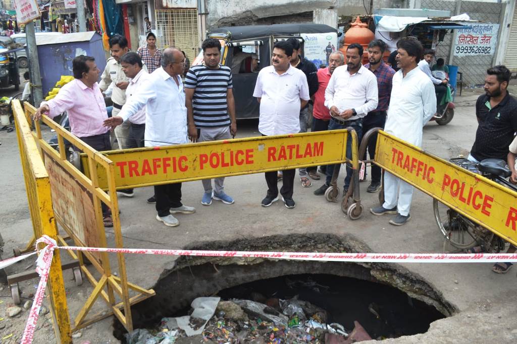 सेठजी का बाजार क्षेत्र में नाले के क्रॉस ड्रेन के गढ्डे में बीती रात गाय के गिर जाने की घटना की पुनरावृत्ति ना हो इस हेतु निगम आयुक्त श्री एपीएस गहरवार ने स्थल का निरीक्षण कर नाले के क्रॉस ड्रेन के गढ्डे को तत्काल दुरस्त करने के निर्देश संबंधित को दिये। निगम आयुक्त श्री गहरवार ने सायर चबुतरा क्षेत्र में निर्माणाधीन सड़क का अवलोकन किया तथा पेयजल पाईप लाईन में लीकेज पाये जाने पर संबंधित को तत्काल लीकेज दुरस्त करने के निर्देश दिये। इस अवसर उन्होने नागरिकों ने आव्हान किया कि वे अपने घरो, दुकानों व व्यावसायिक प्रतिष्ठानों से निकलने वाले कचरे को निगम के कचरा संग्रहण वाहन में ही डालें। निरीक्षण के दौरान पार्षद श्री सलीम बागवान, पार्षद प्रतिनिधि श्री जलज सांखला, कार्यपालन यंत्री श्री जी.के.जायसवाल, उपयंत्री श्री ब्रजेश कुशवाह, श्री शैलेन्द्र गोठवाल आदि उपस्थित थे।