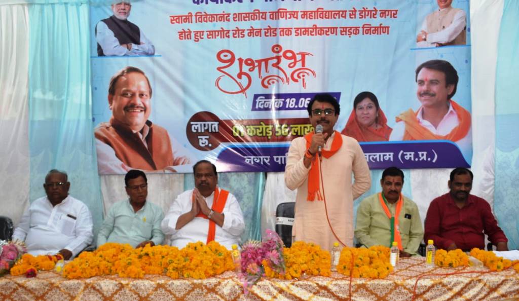 रतलाम 18 जून । डोंगरे नगर क्षेत्र निरंतर विकास की ओर अग्रसर है, आने वाले कुछ समय में यहां अन्य महानगरों की तरह 750 सीट वाला सर्वसुविधायुक्त ऑडिटोरियम बनकर तैयार होगा। उक्त उद्गार विधायक रतलाम शहर माननीय श्री चेतन्य जी काश्यप ने स्वामी विवेकान्द शासकीय वाणिज्य महाविद्यालय से डोंगरे नगर होते हुए सागोद रोड मुख्य मार्ग के 1.56 करोड की लागत से डामरीकरण कार्य के भूमि पूजन के अवसर पर व्यक्त किये।