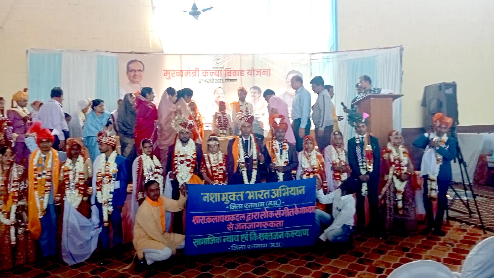 मुख्यमंत्री कन्या विवाह योजना अंतर्गत रतलाम जिले के तीन स्थानों पर 27 फरवरी को आयोजन हुए जिनमें 76 जोड़ों का विवाह संपन्न हुआ। इनमें से 5 जोड़ों का निकाह भी शामिल है। इस दौरान ग्रामीण विधायक श्री दिलीप मकवाना, जिला पंचायत अध्यक्ष श्रीमती लालाबाई, जनपद पंचायत अध्यक्ष श्रीमती साधना जायसवाल, उपसंचालक सामाजिक न्याय श्रीमती संध्या शर्मा, जनपद पंचायत के मुख्य कार्यपालन अधिकारी श्री रामपाल सिंह करजरे आदि उपस्थित रहे।