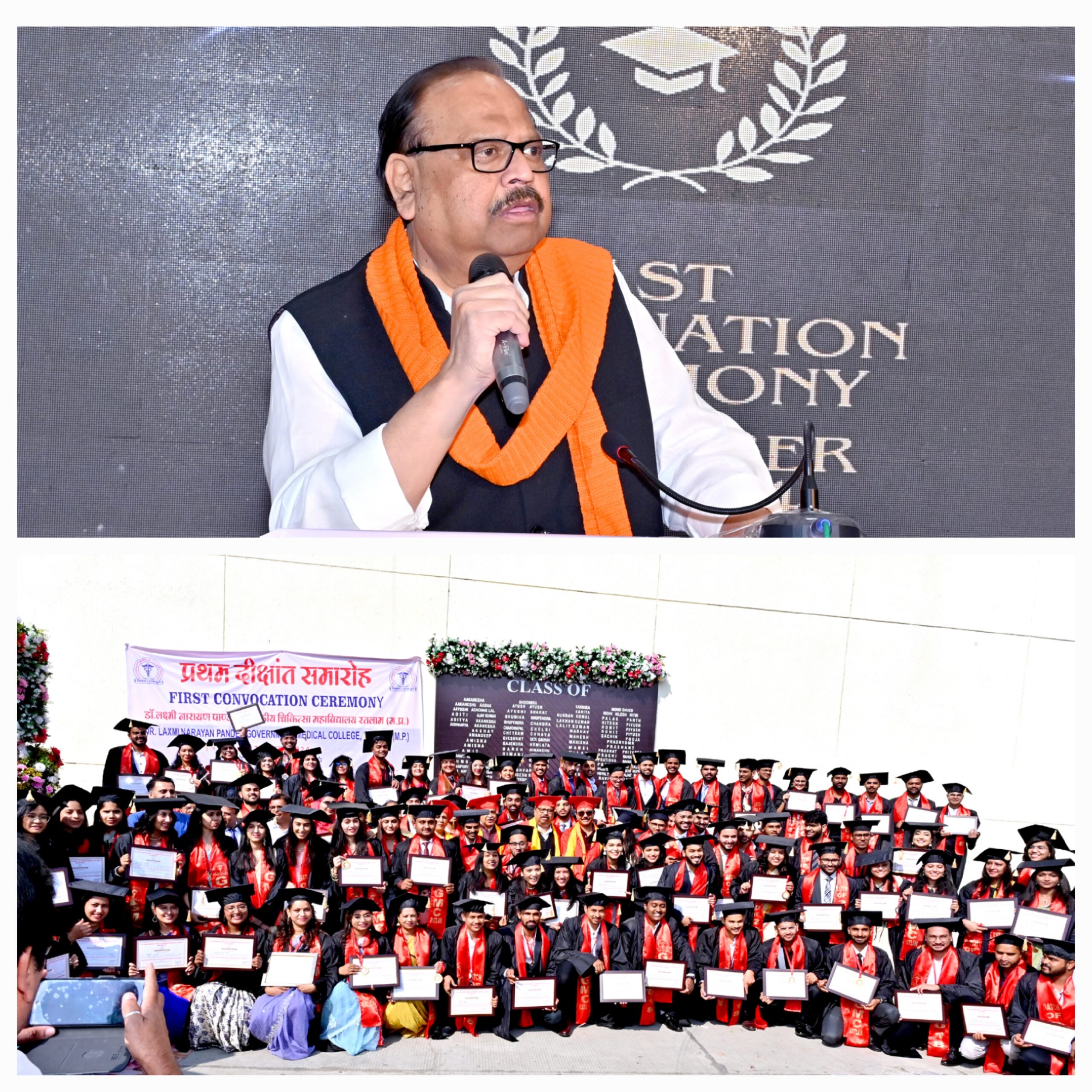 इस अवसर पर कैबिनेट मंत्री श्री काश्यप ने कहा कि कॉलेज का प्रथम दीक्षांत समारोह विद्यार्थियों, उनके परिवार जनों एवं कॉलेज अध्यापकों के साथ-साथ रतलाम नगर एवं मध्य प्रदेश के लिए भी गौरवशाली क्षण है। उन्होंने एमबीबीएस उपाधि प्राप्त करने वाली कॉलेज की प्रथम बैच के विद्यार्थियों को बधाई, शुभकामनाएं देते हुए कहा कि यह आपके जीवन के लिए एक माइल स्टोन है। यहां आपके जीवन का निर्माण हुआ है। आप आगे चलकर इस कॉलेज का नाम रोशन करेंगे।