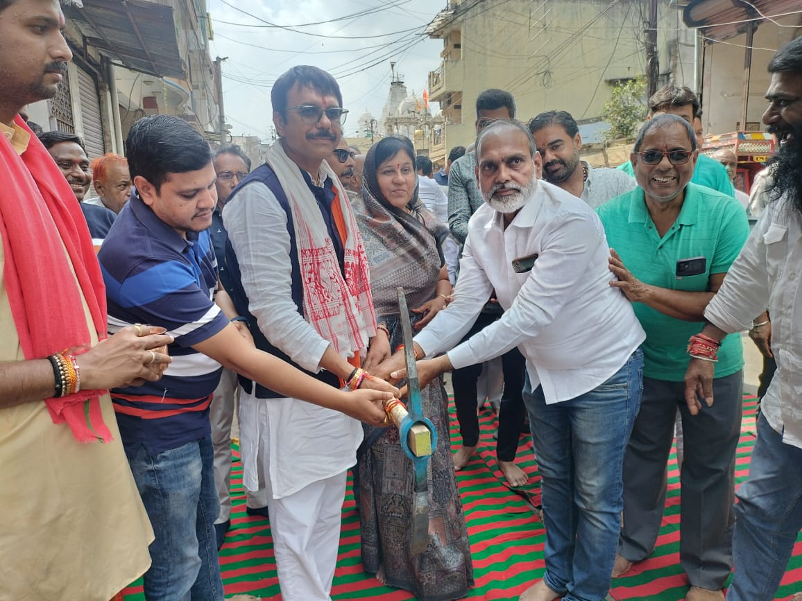 रतलाम 19 सितम्बर। वार्ड क्रमांक 41 स्थित कलाईगर रोड से मोती बाबवजी मंदिर तक सीमेन्ट कांक्रीट सड़क निर्माण कार्य का भूमि पूजन महापौर प्रहलाद पटेल ने निगम अध्यक्ष श्रीमती मनीषा शर्मा, मंडल अध्यक्ष निलेश गांधी, नेता पक्ष भगतसिंह भदौरिया, क्षेत्रिय पार्षद एवं राजस्व समिति प्रभारी दिलीप गांधी, महापौर परिषद सदस्य तथा क्षेत्रिय नागरिकों के साथ विधिवत् पूजा-अर्चना कर किया।