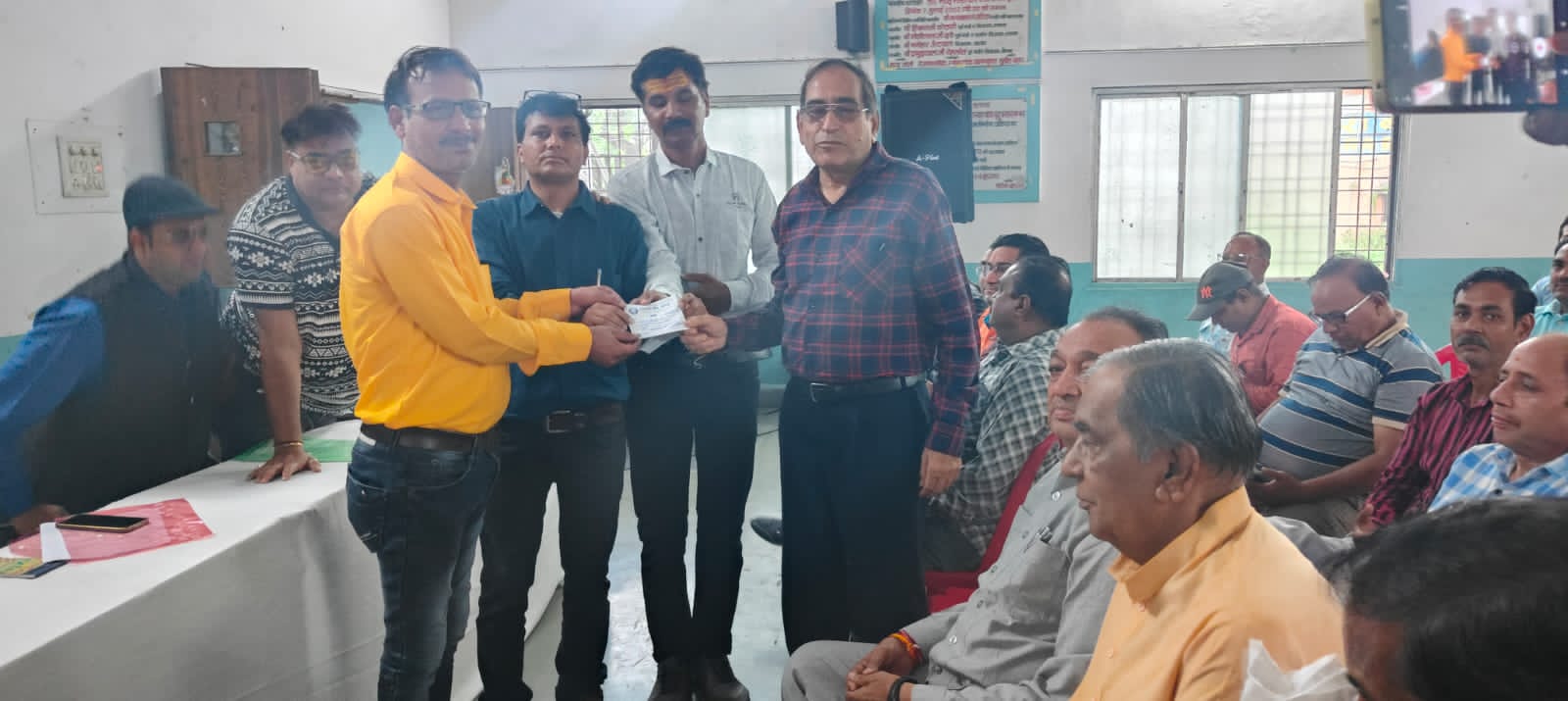 संस्था की ओर से पत्रकार कल्याण कोष में 11 हजार रुपए राशि प्रदान करने वाले वरिष्ठ शरद जोशी, असीमराज पाण्डेय को रसीद प्रदान किया गया। साथ ही हिमालय पर्वत की तलहटी पर 18 हजार फीट से भी अधिक ऊंचाई पर स्थित श्रीखंड महादेव की यात्रा पूर्ण कर लौटे वरिष्ठ साथी तुषार कोठारी का भी स्वागत किया गया। श्री कोठारी ने इस दौरान श्रीखंड महादेव की दुर्गम यात्रा का वृतांत साथियों के साथ सााा करते हुए कई रोचक जानकारियां भी दीं। इसके साथ ही उन्होंने वर्तमान कार्यकारिणी का कार्यकाल 6 महीने बढ़ाने का प्रस्ताव भी रखा जिसे सदन में सर्वानुमति से पारित किया। कोषाध्यक्ष राजेंद्र केलवा ने आय व्यय पत्रक पढ़कर सदन में सुनाया तथा बताया कि वर्तमान कार्यकारिणी के समक्ष आर्थिक संकट था। पंरतु यह उपलब्धि ही है कि संस्था द्वारा किए गए आयोजनों में 95 प्रतिशत कामों के लिए संस्था की राशि का इस्तेमाल न करके अन्य स्तर पर व्यवस्था की गईं। इसका सदन ने अनुमोदन किया।