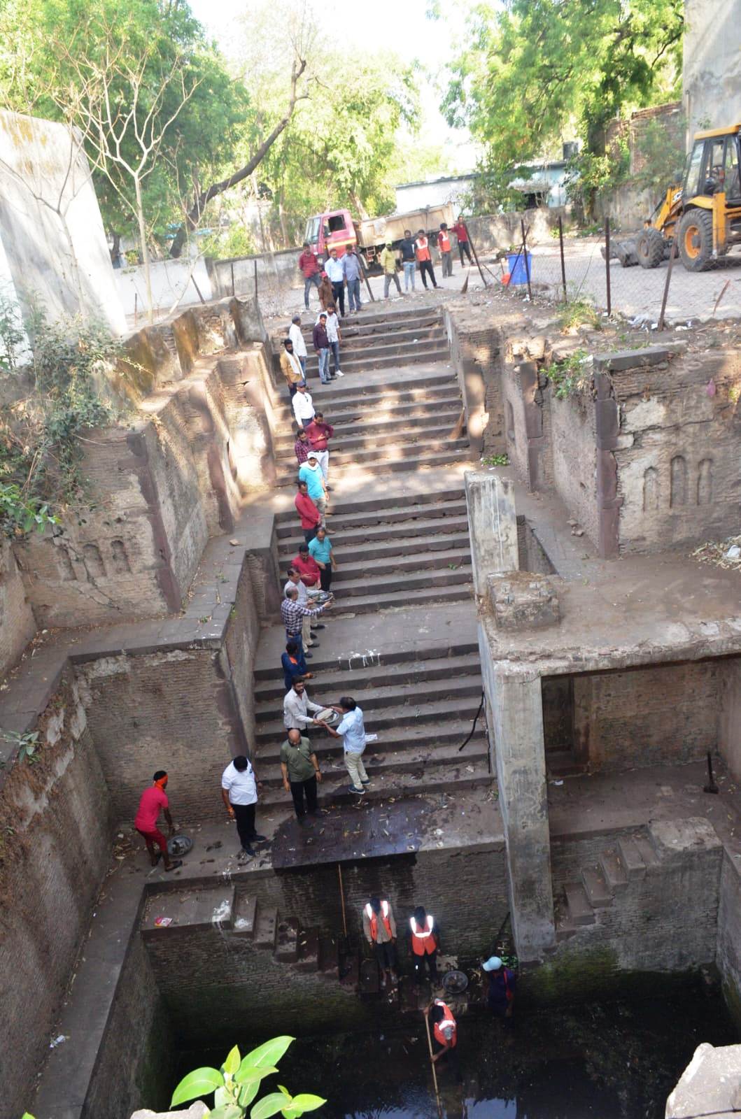 शासन निर्देशानुसार 5 से 16 जून तक चलाये जाने वाले जल गंगा सवंर्धन अभियान के तहत निगम अध्यक्ष माननीय श्रीमती मनीषा शर्मा, निगम आयुक्त श्री हिमांशु भट्ट, जलकार्य एवं सीवरेज समिति प्रभारी श्री भगतसिंह भदौरिया, पार्षद श्रीमती मनीषा चौहान, निगम अधिकारी, कर्मचारी, व नागरिकों ने प्रातः सिविक सेंटर व न्यायालय परिसर स्थित प्राचीन बावड़ी की साफ-सफाई करवाई। इस अवसर पर पार्शद प्रतिनिधि श्री विजय सिंह चौहान इस अवसर पर निगम अधिकारी सर्वश्री जायसवाल, सुहास पंडित, अनवर कुरेशी, बी.एल. चौधरी, ए.पी. सिंह, सहित निगम के अधिकारी, कर्मचारी व नागरिक उपस्थित थे।