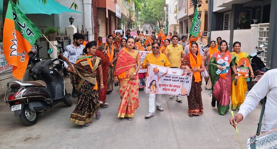 रतलाम। 10 मई 2024 शुक्रवार को वार्ड क्रमांक 40 में भाजपा महिला मोर्चा मंडल अध्यक्ष भारती राहोरी के नेतृत्व में विशाल जनसंपर्क भाजपा सांसद प्रत्याशी अनीता सिंह नागरसींग चौहान के समर्थन में निकाला गया। जो भाजपा कार्यालय पैलेस रोड से प्रारंभ होकर डालु मोदी चौराहा, नागर वास, जैन कॉलोनी होते हुए महलवाडे के मुख्य द्वार पर समापन कर शपथ दिलाई ।इसमें अबकी बार 400 पार, भाजपा को जिताना है घर-घर कमल खिलाना है, मैं हुं मोदी का परिवार, इस तरह के कई नारे लगाए गए तथा पेंपलेट भी बांटे और लोगों को भी समझाया की अबकी बार कमल के चुनाव चिन्ह को ही वोट देना है ।
