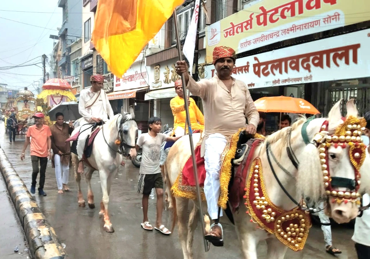 मौसम की प्रतिकूलता के बावजूद सैकड़ो की संख्या में सुश्रावक एवं सुश्राविकाएं मोहन टॉकीज पहुंचे एवं वहां नवकारसी का लाभ लेकर प्रवेश यात्रा प्रारंभ करी। वरघोड़ा में सबसे आगे इंद्रध्वजा उसके पीछे सुसज्जित अश्व पर नवयुवक धर्म पताका लिए चल रहे थे।