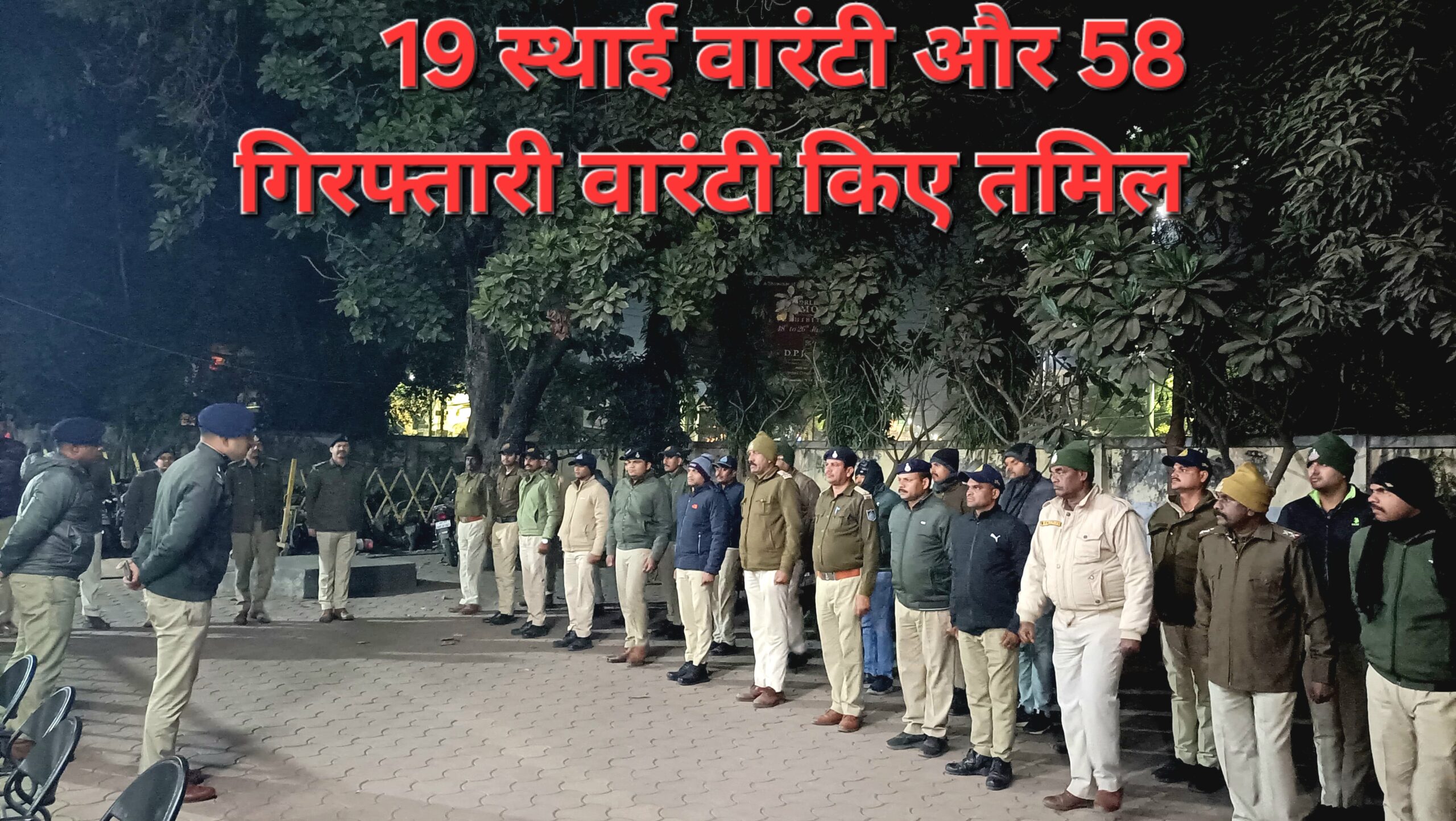 : पुलिस अधीक्षक एवं अतिरिक्त पुलिस अधीक्षक द्वारा पुराने पुलिस कंट्रोल रूम पर पुलिस बल को आवश्यक दिशा निर्देश देकर शहर में कांबिंग गश्त हेतु रवाना किया गया। पुलिस अधीक्षक के मार्गदर्शन में संबंधित सीएसपी/एसडीओपी द्वारा अपने अनुभाग के बल की ब्रीफिंग कर कॉम्बिंग गस्त हेतु रवाना किया गया। कांबिंग गश्त के दौरान जिसके अंतर्गत विभिन्न प्रकरणों में वांछित लंबे समय से फरार-19 स्थाई वारंटियों, 58-गिरफ्तारी वारंट तामील करवाए गए।