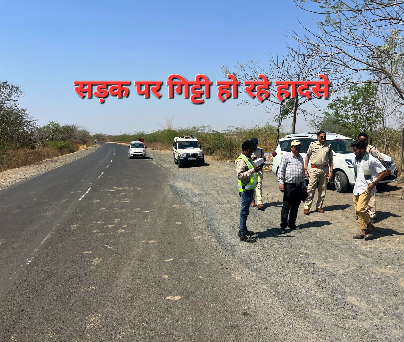 दिनांक 24.03.2025 को श्रीमान पुलिस अधीक्षक महोदय श्री अमित कुमार (भा.पु.से.), श्रीमान अतिरिक्त पुलिस अधीक्षक महोदय श्री राकेश खाखा (रा.पु.से.) के दिशा निर्देशन में उप पुलिस अधीक्षक यातायात श्री अनिल कुमार राय व हमराह का.सउनि.सर्वेश दिवेदी, आर.1045 शिव कुमार, व MP रोड़ सेफ्टी कमेटी की तरफ से सहायक प्रबंधक श्री अतुल मुले व उनकी टीम एवं एग्रो इंफ्राइस्ट्रक्चर एण्ड प्रा.लि. कंपनी के GM श्री सुमित गुप्ता व उनकी टीम द्वारा संयुक्त रूप से विगत माह मे स्टेट हाईवे NH.39 पर ग्राम आम्बाकुण्डी मे हो रही दुर्घटनाओ को दृष्टीगत रखते हुए पुरी टीम द्वारा दुर्घटना स्थल का निरीक्षण किया गया एवं घाट से उतर कर बाँसवाड़ा जाने वाली रोड़ पर बन रहे कर्व/अँधे मोड़ पर दुर्घटना को रोकने हेतु कमेटी द्वारा परिशोधन कार्य प्रस्तावीत किये गये जिनमे रम्बल स्ट्रीप,रोड़ मार्किंग, यातायात संकेतक चिन्ह, केट आई, रोशनी की उपलब्धता, मिडीयन क्रेस बैरियर/रेलिंग आदि पर कंपनी द्वारा कार्य किया जावेगा, जिससे स्टेट हाईवे NH.39 पर बन रहे ब्लैक स्पॉट को खत्म किया जाकर दुर्घटनाओ की रोकथाम की जा सके ।